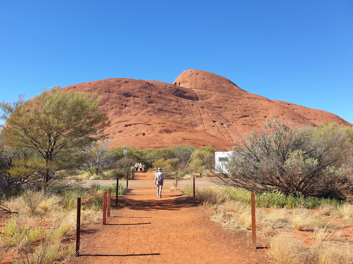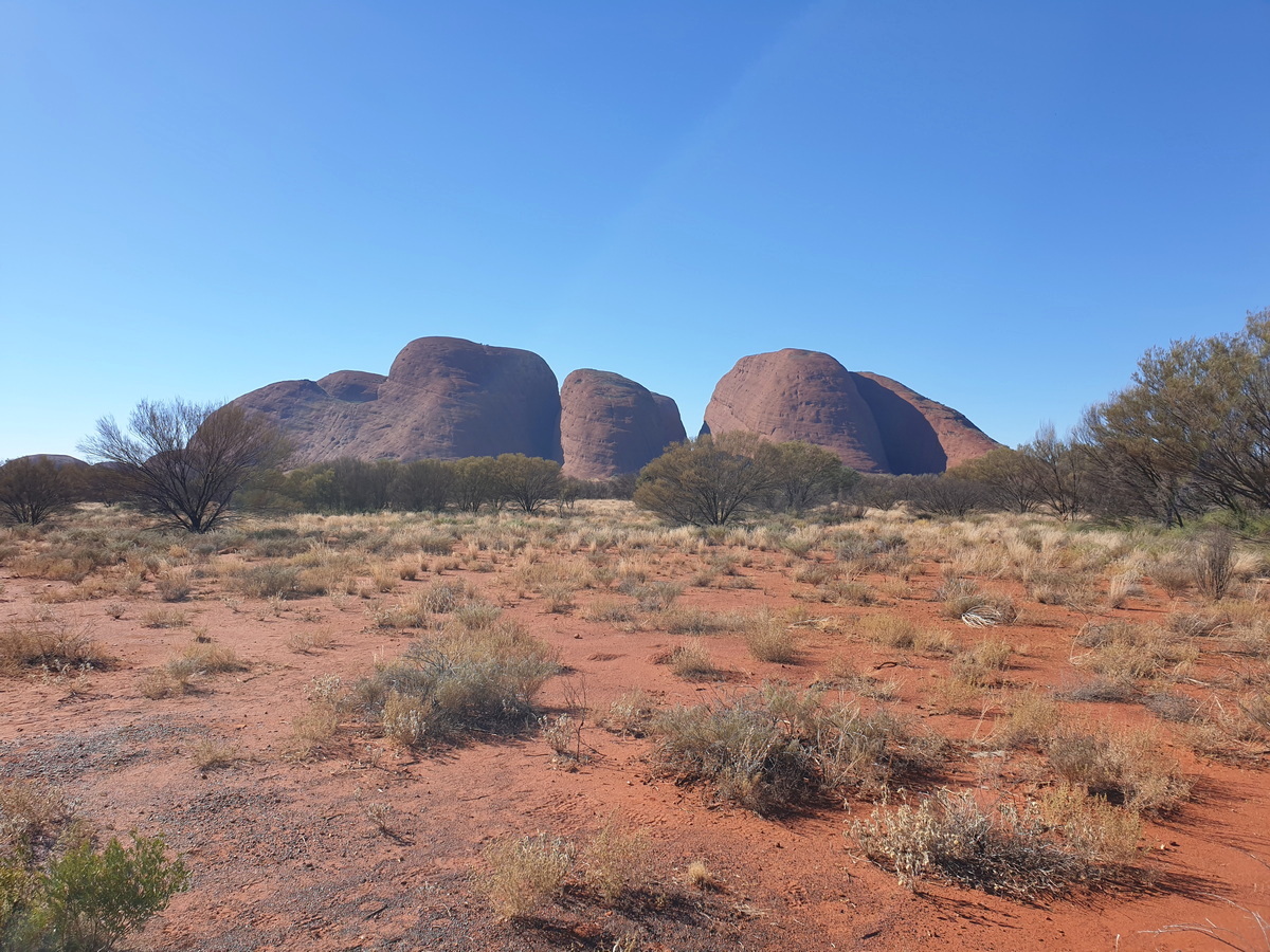 Uluru Kata Tjuta Nationalpark umfaßt auch die Kata Tjuta, auch “Olgas” genannt, die sich 50km von Uluru befinden. Kata Tjuta umfassen 36 Felskuppeln mit tiefen Tälern und Schluchtent. Die Felskuppeln der Olgas sind das Ergebnis einer Millionen Jahre langen Erosion eines einzelnen Felsen, der noch viel größer gewesen sein muss, als der Uluru heute ist.